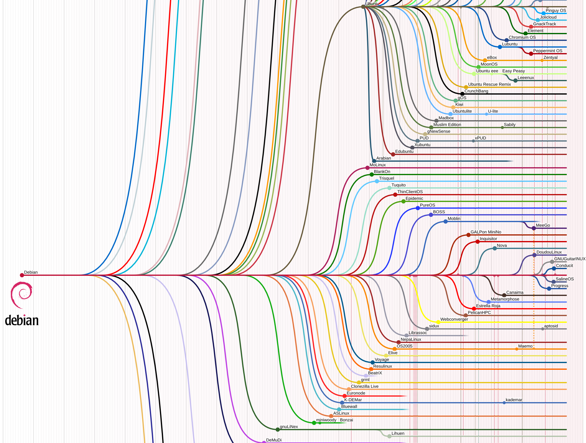 Dies bedeutet, dass aus der Distribution Debian mehrere eigenstaendige Projekte entstanden, die aber auf der Basis von Debian entwickelt worden sind.